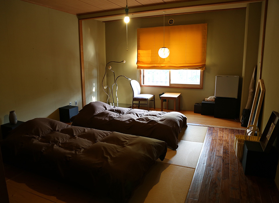 寬敞的臥室是床的規格。玻璃的日式客廳藝術。私人廁所是有室外創造真正飛到顏射。這可能是很好的慢讀一本書在沙發床。不過,怎麼一點平凡。